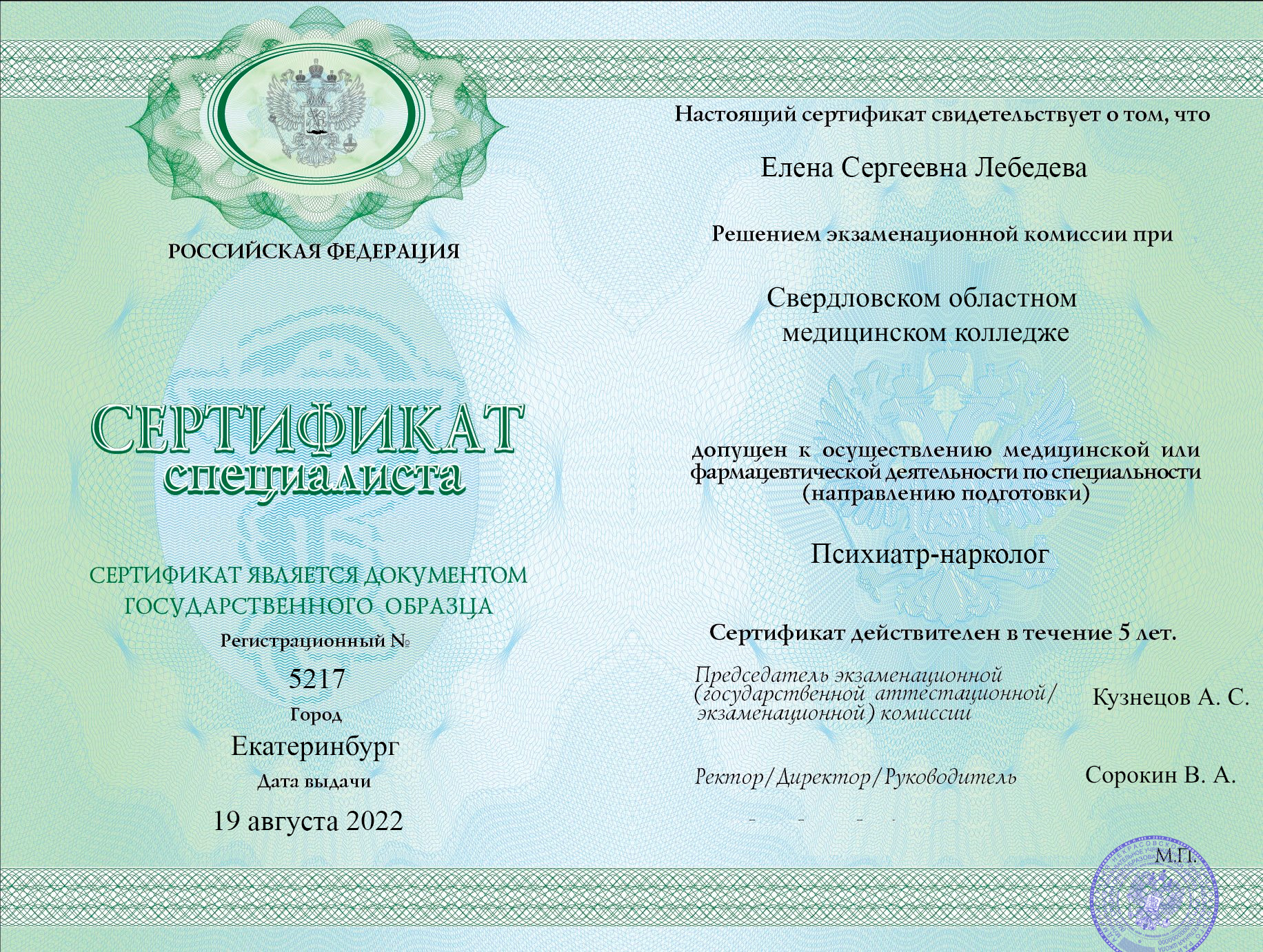 Елена Сергеевна Лебедева врач нарколог клиники доктора Стукаловой в Находке